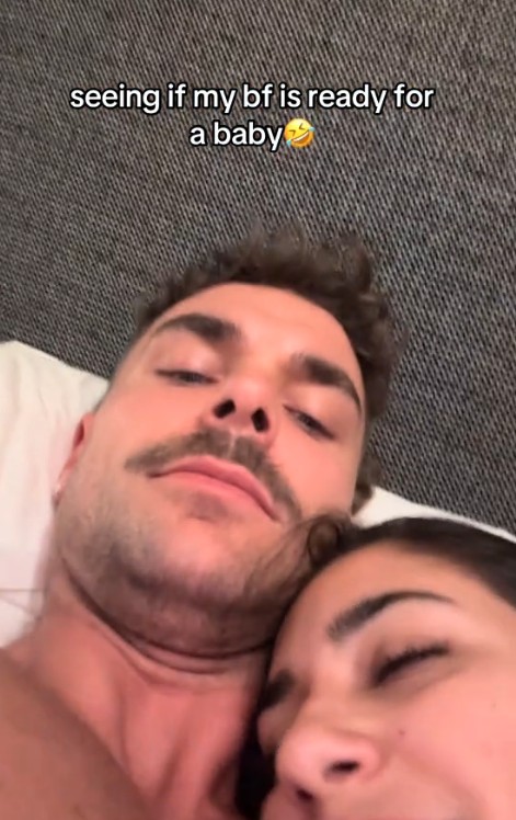 The star’s cryptic clue lay in the caption, which read: “Seeing if my bf is ready for a baby (laughing face emoji).”
