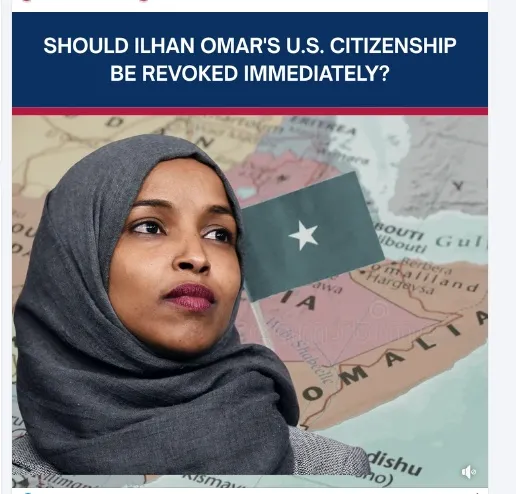 A widely circulated social media image poses an extremely controversial question: “SHOULD ILHAN OMAR’S U.S. CITIZENSHIP BE REVOKED IMMEDIATELY?” This message, overlaid on a map of her native Somalia, is more than just standard political criticism; it is an attack on the citizenship status and identity of one of the first Muslim women elected to the U.S. Congress.