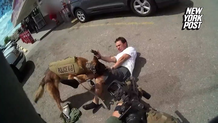 Arizona police shot a suspect to death after he pointed a handgun at a police dog’s head, video shows.