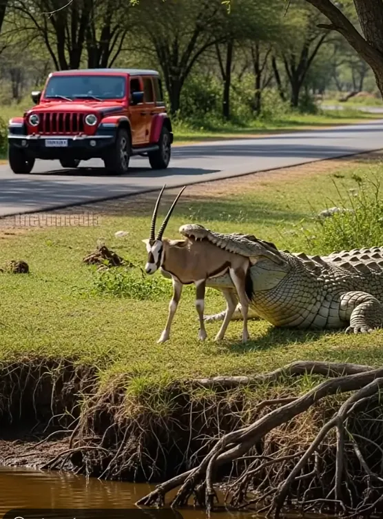 The water shimmered beneath the afternoon sun, silent and still — too still. On the edge of the savanna, an oryx stepped forward, its long horns catching the light like polished ivory. It had wandered miles across the parched land for a sip of water. The air was hot, thick, and heavy. Nothing moved — until the surface exploded.