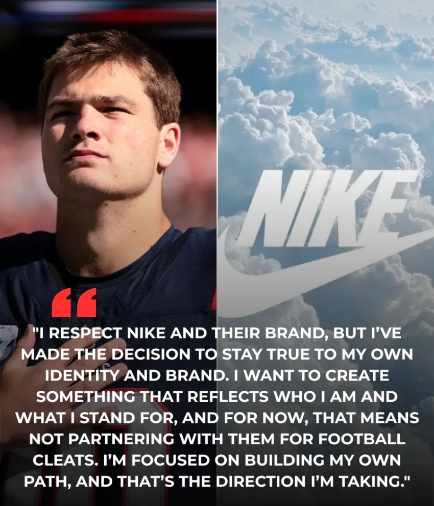 Maye, who has been on Nike’s radar due to his standout performances and growing popularity in college football, explained that his decision was rooted in his desire to stay true to his personal brand and values. “It wasn’t an easy decision, but at the end of the day, I have to make choices that align with who I am and where I want to go,” Maye said in a statement. “I respect Nike and everything they’ve done for athletes, but this just wasn’t the right fit for me.”