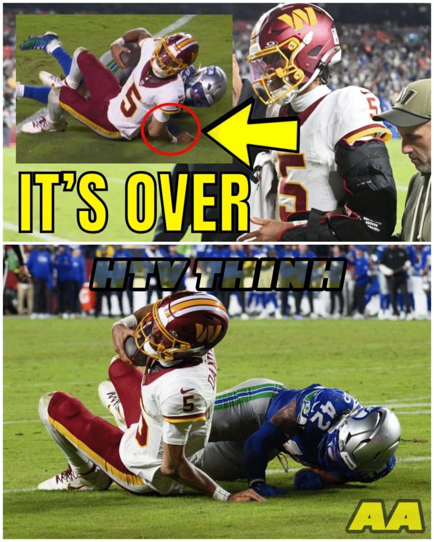 While the Seahawks showcased their dominance on the field, the spotlight quickly shifted to a serious injury sustained by Commanders quarterback, Jayden Daniels.