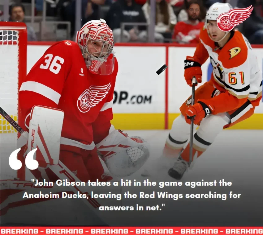Before his departure, Gibson had made several key saves for the Red Wings, especially in the first period during a scoreless tie.