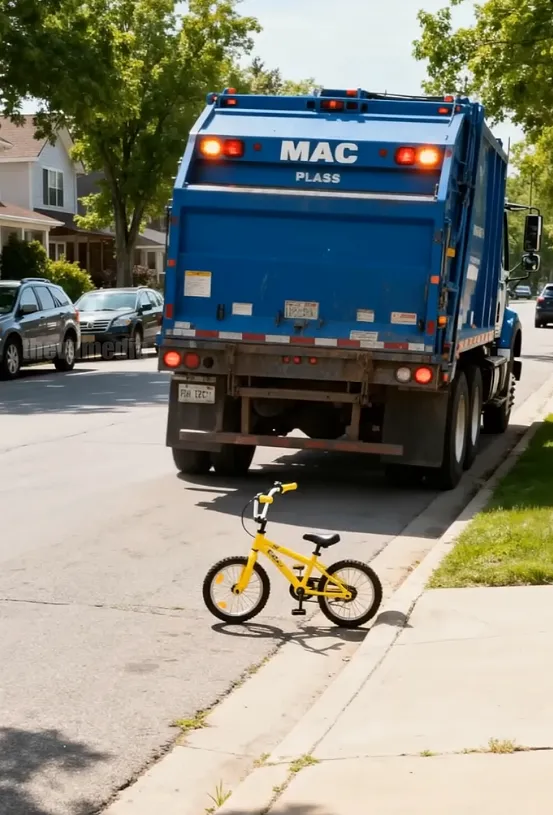 A few houses away, Sam Dawson, a sanitation worker of twenty years, was maneuvering his garbage truck through the narrow street. He didn’t see the bike propped against a trash bin—until it was too late. A soft crunch, a flash of blue beneath the tires, and Sam’s heart sank.