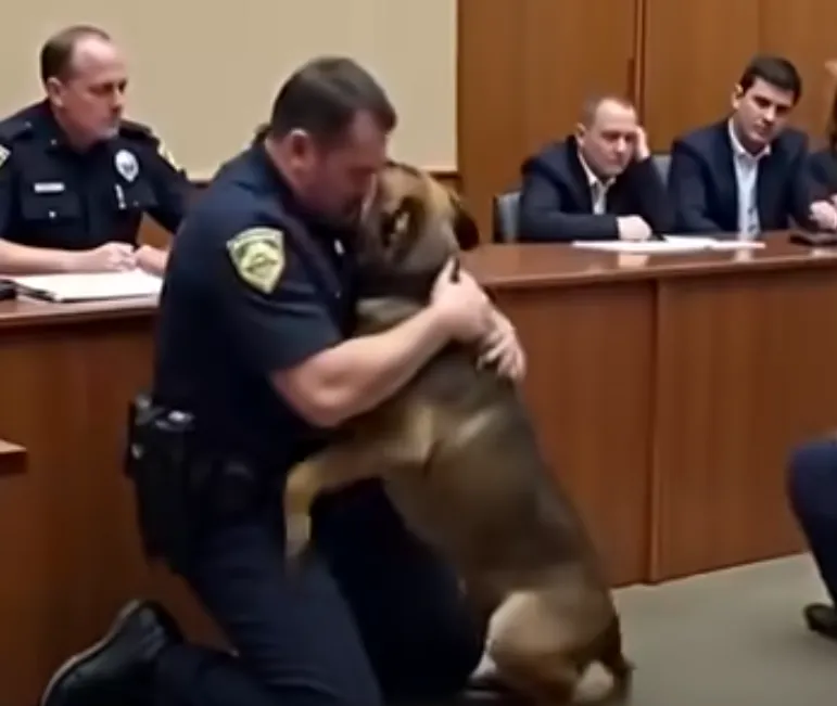 Daniel dropped to one knee, wrapping his arms around his partner. “Hey, buddy,” he whispered, his voice thick with emotion. “I’ve missed you so much.”