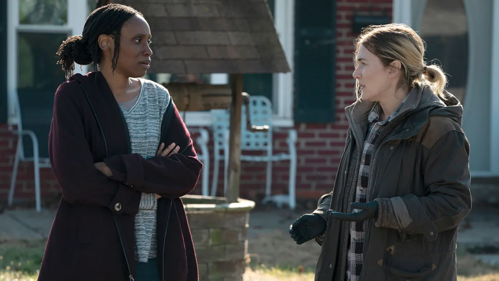 The personal stakes for Mare are higher than ever. Kate Winslet returns with a steely, almost frightening resolve, her character no longer just grieving but fighting for her own redemption and her soul’s survival. The season heavily explores the strained relationship between Mare and her best friend Lori, played with quiet intensity by Julianne Nicholson. Loris forced silence from the events of the previous season now acts as an unspoken barrier, a tragic echo of loyalty and loss that Mare must contend with while pursuing justice.
